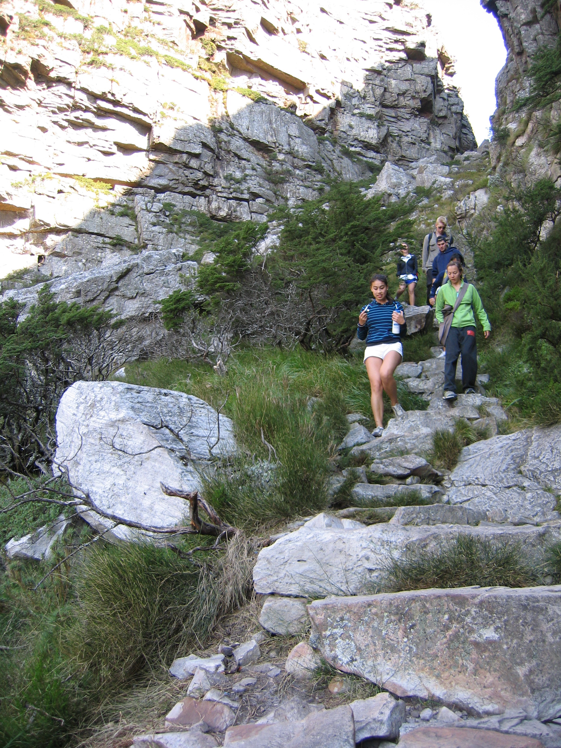 It was so windy that the cable car was not running. So we’d have to hike down. We took Platteklip Gorge, about 800 rock steps going down.